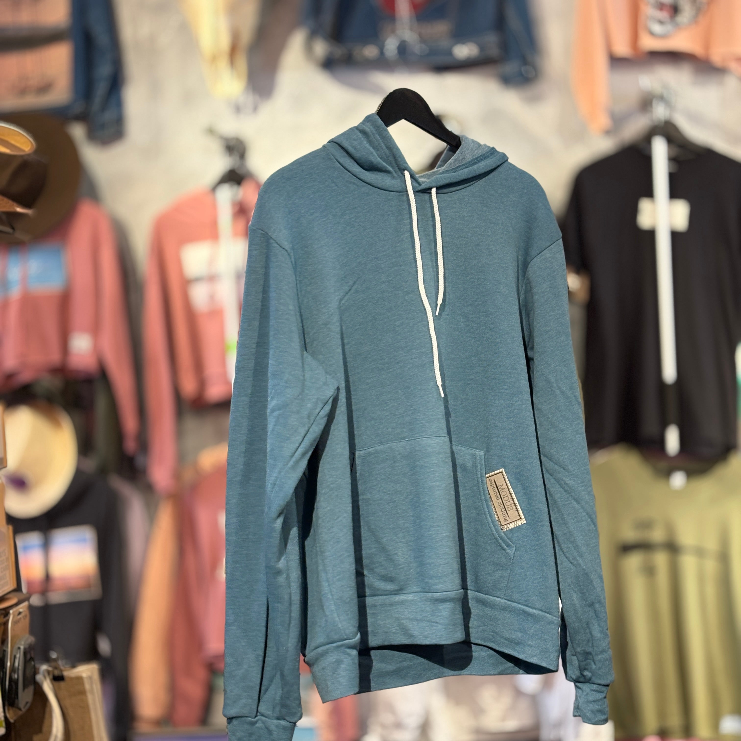 Available in Asphalt, Heather Deep Teal, Steel Blue, and Heather Dust